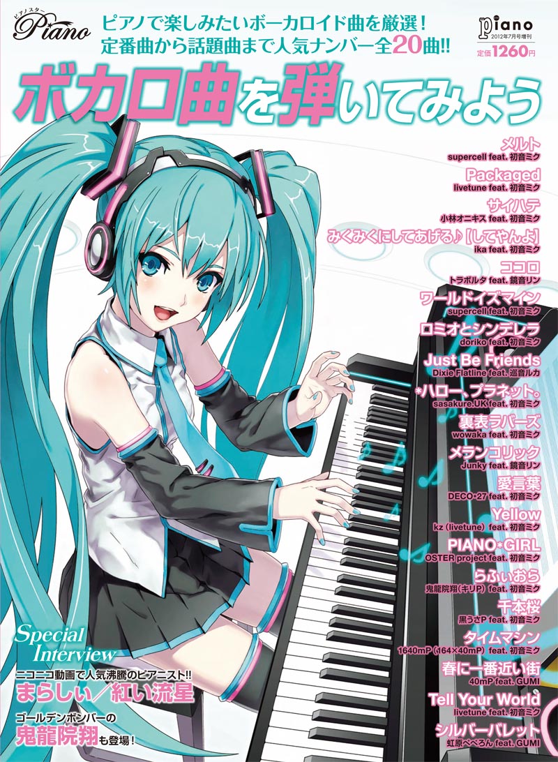 今年もコミケの夏がやってきますね。例年より早いタイミング? なので微妙にスケジュール感狂ってました。 そんなこんなで今年はイラスト集出させていただきます。 いろいろやらせて頂いたお仕事のイラストや過去のイラストを交えたフルカラーイラスト集です。 よろしくお願いします! 日曜日 西地区”う”04b Electric Range ちなみに表紙に使っているひまわり娘のイラストです。 こちらは別件で必要で描いていたものだったのですが、 いろいろあって表紙イラストとして夏らしく活躍します。 Pixivでも是非! 月刊ピアノ2012年7月号増刊 ボカロ曲を弾いてみようおこんにちは。